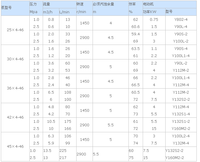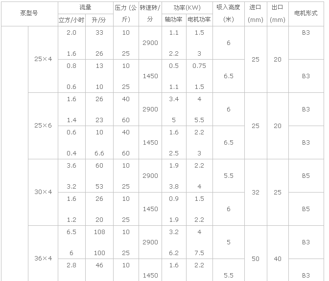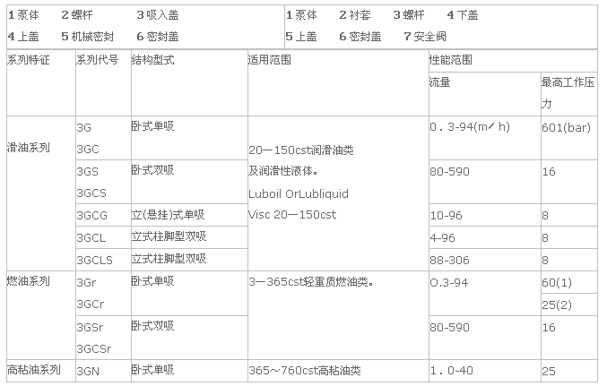 3G螺桿泵性能參數(shù)表: